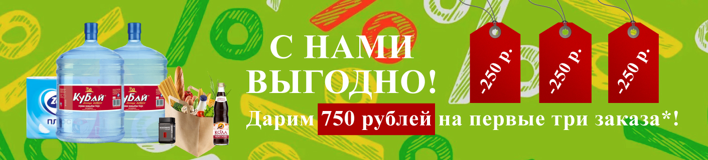 Впервые на нашем сайте? Чтобы Вам было проще и приятнее оформить доставку воды – мы дарим Вам 750 рублей на первые три заказа